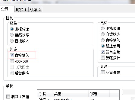 2、勾选外设→直接输入,如果是XBOX360手柄选择XBOX360选项